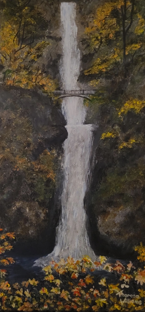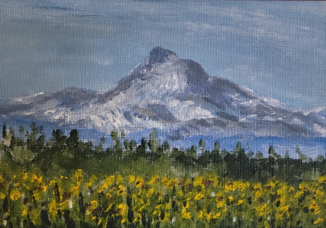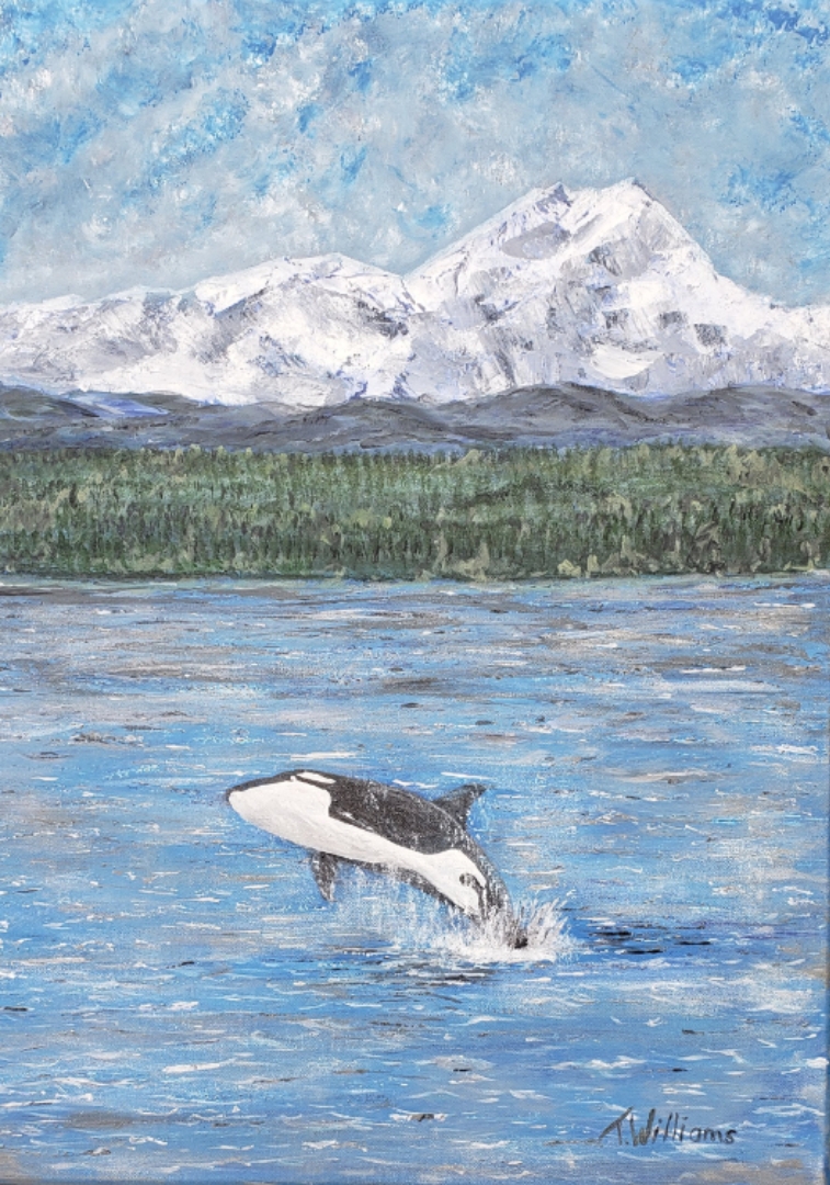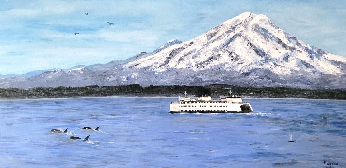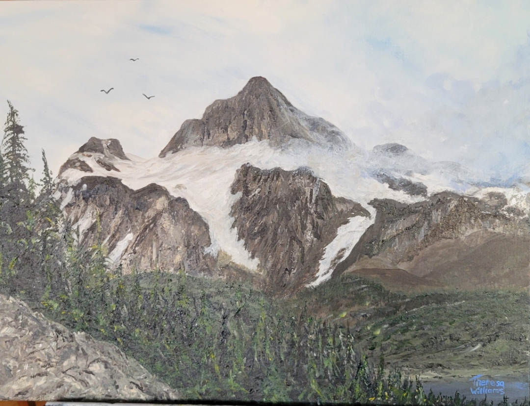 Theresa is a Tlingit Alaska Native who grew up in Edmonds. Her paintings have been shown in the juried exhibits at both the Edmonds Arts Festival and Shoreline Arts Festival. She has also participated in the Shore Lake Arts 6×6 NW fundraising event. She had paintings on display at the Lynnwood Event Center for their Magestic Managerie: Animals of Earth and Ocean show. She loves to use bold, vibrant colors. “I love when people are looking at my work and come up to me and tell me “I’d love to go to that place!or, I’ve been there!” Theresa usually has been to that ‘place’ as she usually uses her own photos as references, occasionally friends will offer their photos for her to reference. She is a certified Native Tribal Artist with the Tlingit and Haida Central Council of Indian Tribes of Alaska. She will have some examples on a take of the ceremonial Alaskan Button Blanket Regalia designs, in wall hanging form. Theresa has recently began teaching acrylic landscape classes at Shoreline Community College and for the Shorelake Arts Council. She is on the board for the Shorelake Arts Council as well as Board President at Gallery North. She will also soon be teaching painting classes at Gallery North in Edmonds. She is inspired by the majestic Pacific Northwest Mountains, Puget Sound, the gorgeous sunsets over the Olympics, the beaches, lakes, and varied wildlife of the magnificent Pacific Northwest.