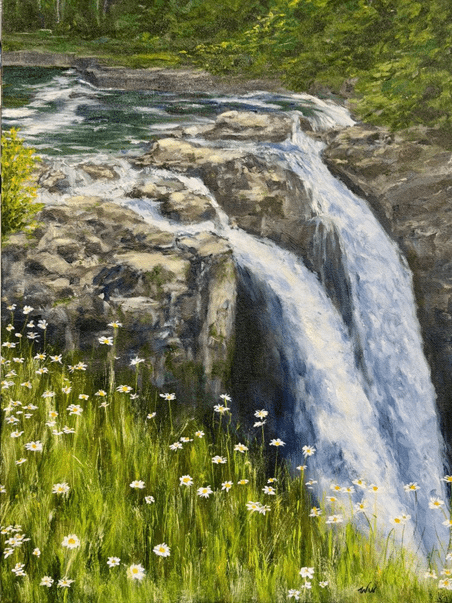 Wai Wong-Miller works in oil, watercolor, and mixed-media paintings. Wai’s love of nature, animals,landscapes, flowers, and marine life is the subject she explores in her paintings. Her paintings tend to draw the viewer into her world, rich with colors and light. Her styles are a confluence of Contemporary,Impressionistic, and Abstract Realism, and she continues to push her boundaries as she learns and develops as a painter.“Daisies at Snoqualmie” by Wai-Wong-Miller
